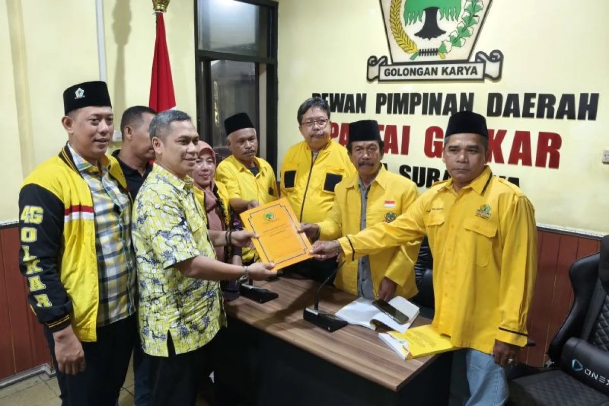 Berita Golkar – Akmarawita Kadir menyerahkan berkas guna maju mendaftarkan diri pada pemilihan Ketua Dewan Perwakilan Daerah (DPD) Partai Golkar Surabaya periode 2025-2030, Sabtu.