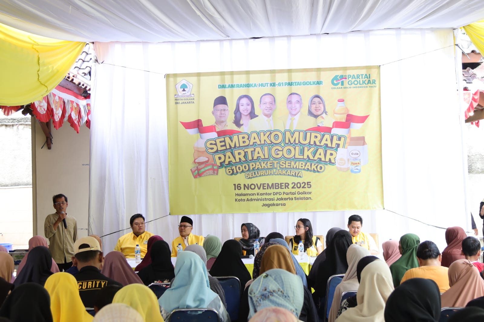 Berita Golkar – Dalam rangkaian peringatan HUT ke-61 Partai Golkar, jajaran pengurus Partai Golkar Kota Jakarta Selatan menggelar kegiatan sosial berupa pembagian ratusan paket sembako murah pada Minggu (16/11/2025). Aksi ini merupakan bagian dari penyaluran 6.100 paket sembako yang digelar serentak di seluruh Jakarta sebagai bentuk komitmen partai untuk hadir langsung membantu masyarakat.
