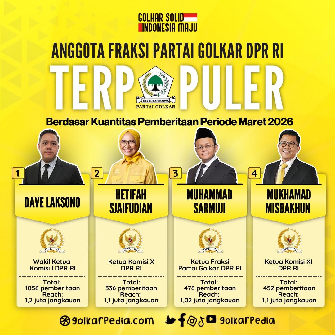 Berangkat dari alasan ini, kami redaksi Golkarpedia.com mengadakan riset terkait anggota DPR RI Fraksi Partai Golkar yang paling banyak diberitakan dalam kurun periode bulan Maret 2026. Pemberitaan dari seorang anggota DPR RI tentu bisa menjadi indikator populisme yang ia miliki.