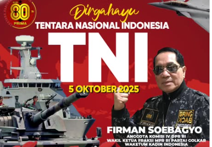 Berita Golkar – Wakil Ketua Fraksi Partai Golkar MPR RI, Firman Soebagyo, menyampaikan apresiasi dan rasa bangganya atas kiprah Tentara Nasional Indonesia (TNI) yang genap berusia 80 tahun pada 5 Oktober 2025. Menurutnya, TNI bukan sekadar institusi pertahanan, melainkan pilar utama kedaulatan dan penjaga keutuhan NKRI yang telah membuktikan dedikasi dan profesionalismenya selama delapan dekade.