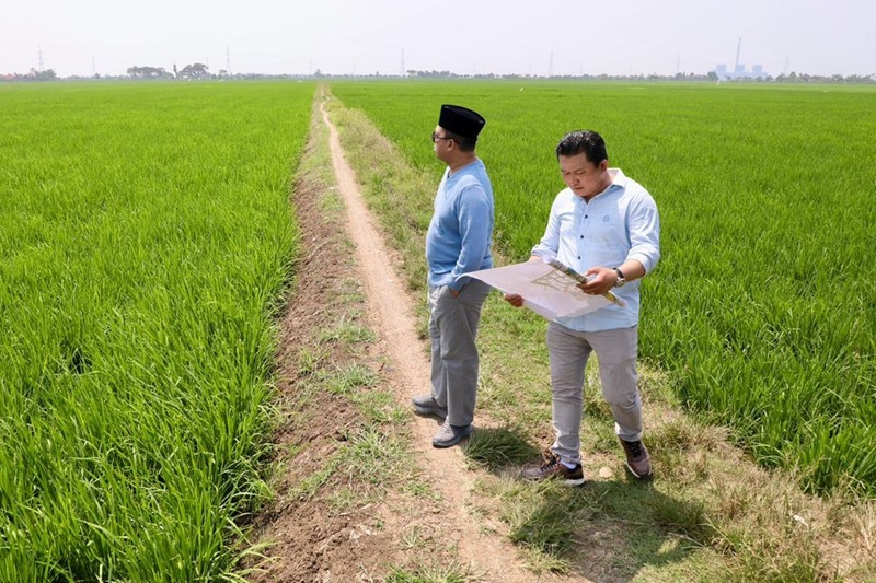 Menteri Agraria dan Tata Ruang/Kepala Badan Pertanahan Nasional (ATR/BPN), Nusron Wahid, meninjau langsung lokasi permohonan penggunaan lahan sawah yang direncanakan untuk pengembangan industri tersebut.
