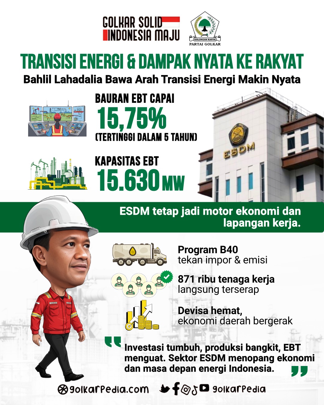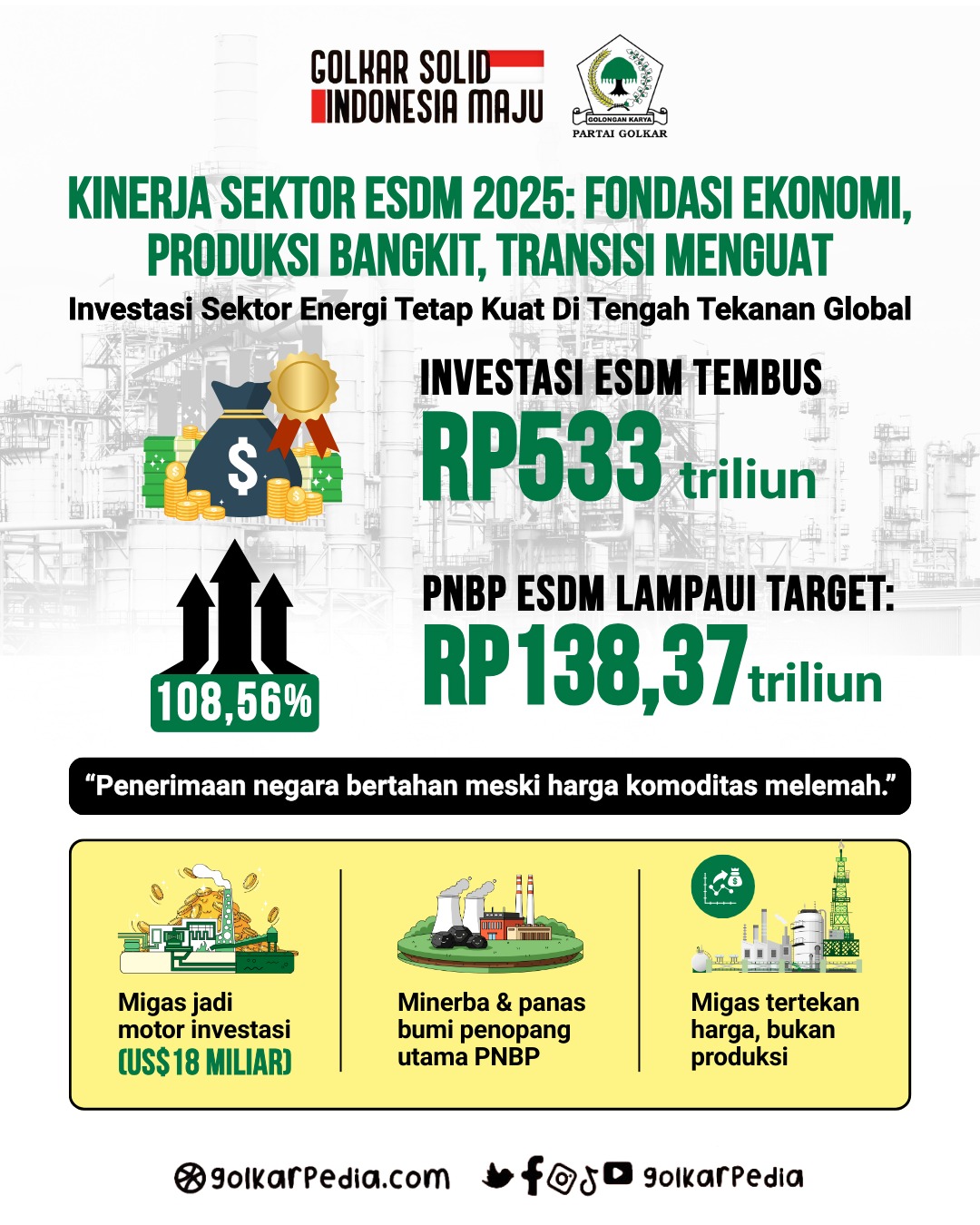Berita Golkar – Kinerja sektor energi dan sumber daya mineral (ESDM) Indonesia sepanjang 2025 mencatat sejumlah capaian penting meskipun menghadapi dinamika harga komoditas global dan tantangan struktural dalam industri energi.