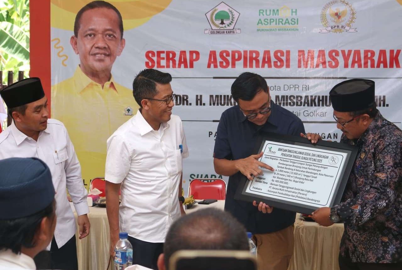 Bantuan ini dialokasikan untuk perbaikan tanggul longsor Sungai Petung melalui pembangunan bronjong, sebagai upaya perlindungan terhadap tambak bandeng di Kelurahan Blandongan.