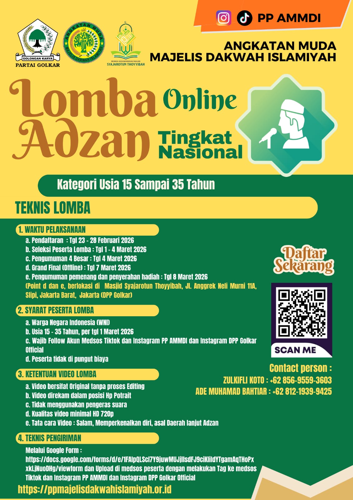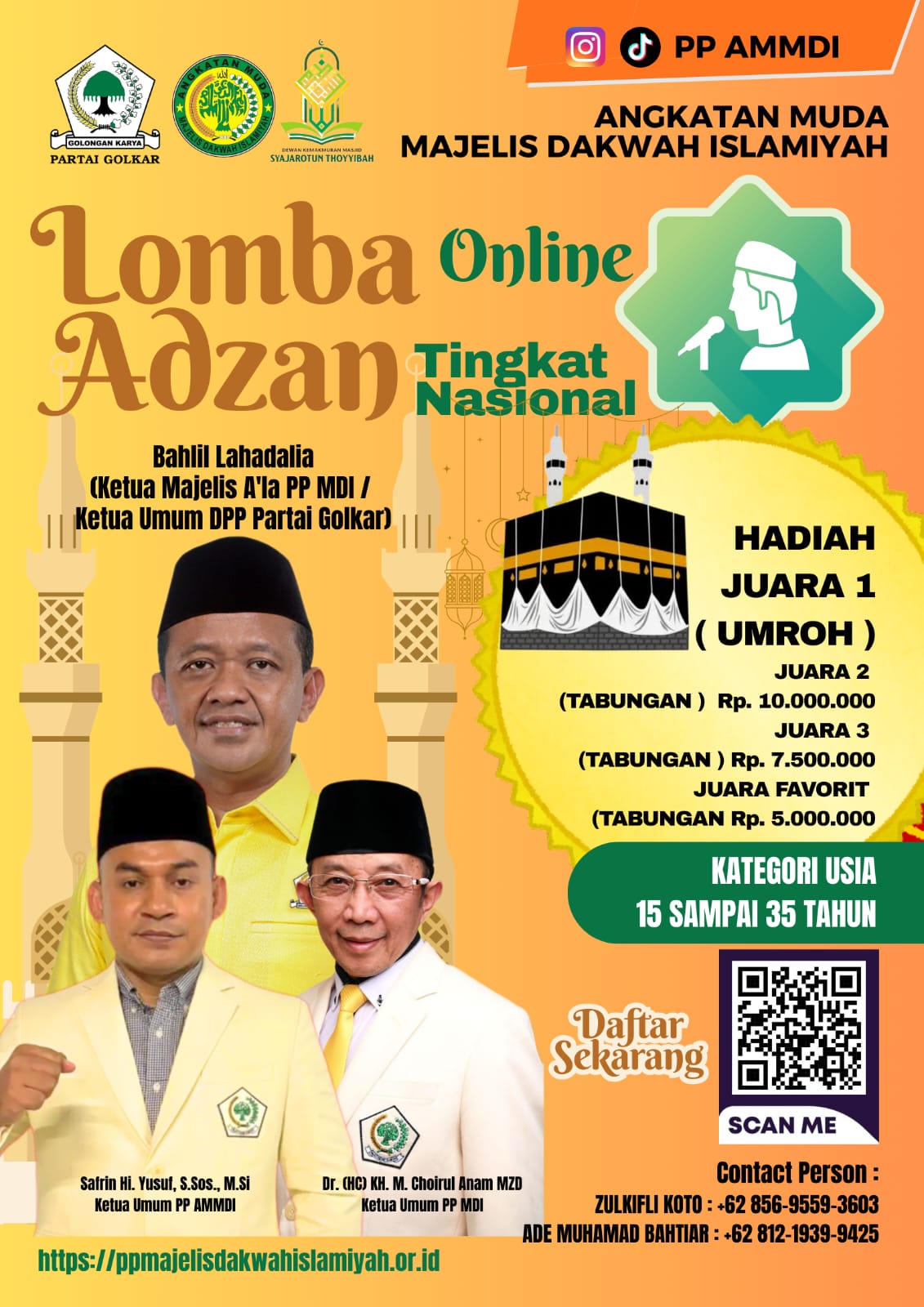 Informasi lebih lanjut mengenai pendaftaran dan rangkaian kegiatan dapat diakses melalui Instagram resmi PP AMMDI serta website: ppmajelisdakwahislamiyah.or.id.