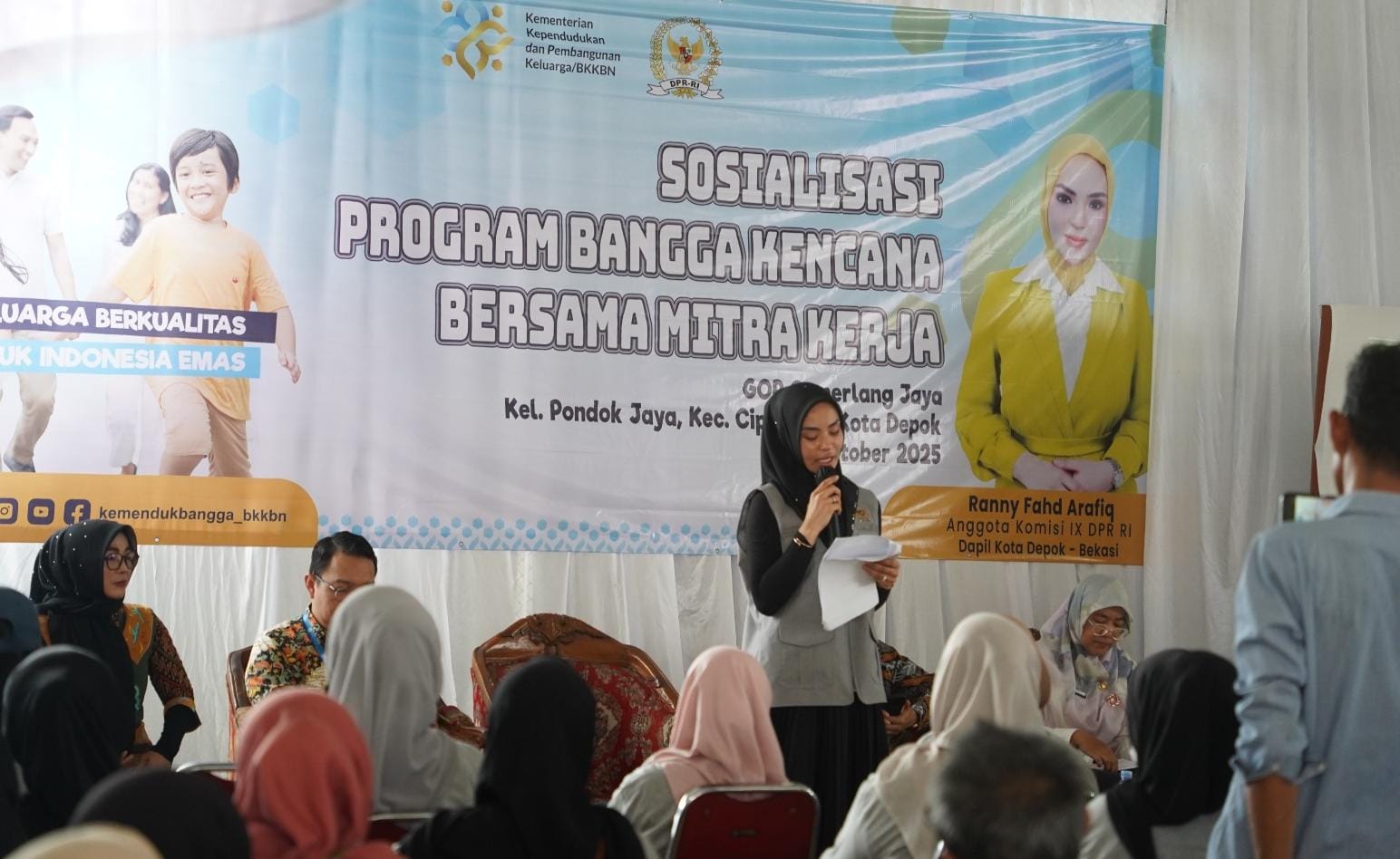 Berita Golkar – Anggota Komisi IX DPR RI dari Fraksi Partai Golkar, Ranny Fahd Arafiq, bersama Badan Kependudukan dan Keluarga Berencana Nasional (BKKBN), menggelar kegiatan Sosialisasi Program Bangga Kencana (Pembangunan Keluarga, Kependudukan, dan Keluarga Berencana) di GOR Cemerlang Jaya, Cipayung, Kota Depok tanggal 15 Oktober 2025. Acara ini dihadiri berbagai unsur masyarakat serta mitra kerja yang berkomitmen mendukung terwujudnya keluarga berkualitas menuju Indonesia Emas 2045.