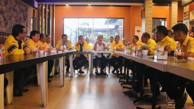 “Ada 3 keputusan yang sudah resmi tadi diketok oleh Ketua Umum Airlangga Hartarto: Prabowo-Gibran sebagai capres-cawapres, legislatif menang minimal 20% dan kami diberi tugas langsung oleh Pak Ketum sebagai calon kepala daerah,” Tutur Lambert Jitmau kepada Golkarpedia.